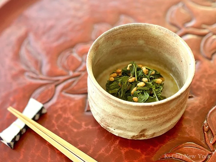 After brewing, the tea leaves take on a second life — dressed with roasted rice and a touch of ponzu, simple, nourishing, and quietly beautiful.