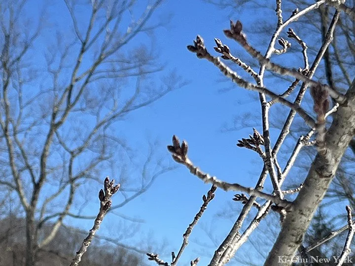 Buds of the Yoshino cherry trees we planted last year. Spring is already beginning.
